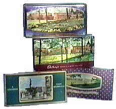 Another piece of luck gave us another Colmans Mustard tin, clearly of about the same period, but whether it came before, or after the other we don't know. The emphasis of the design is on the writing and graphics (the front picture if of Edinburgh) rather than the shape and 'glitzy' appearance. Obviously the design of these tins, as with any others, was intended to ehnance and increase sales of the product. The thinking about thow this was achieved must have changed considerably between these tins! Alternatively the tins were intended for different markets - glitzy for the English, and more down to earth and picturesque for the Scots!