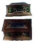The tins are some twelve inches long by eight inches deep and stand ten inches tall. The top has a false inner lining to give it a smooth finish as the outside of the top is imbossed and very detailed. The Colmans logo appears in the bottom right of the lid interior.